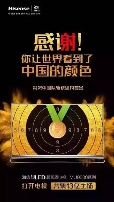 里約奧運進行中,中國首金來的有點遲,直到第二個比賽日,首次參加奧運會的張夢雪在女子10米氣手槍決賽中奪得金牌,國內(nèi)媒體頓時炸開了鍋,國內(nèi)品牌也奉獻了一批優(yōu)質(zhì)的借勢海報。