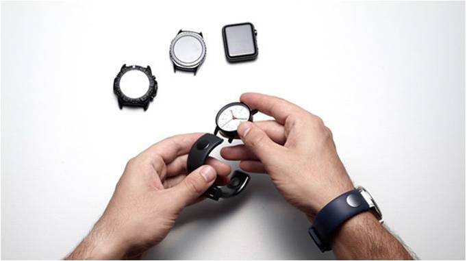 這是怎么做到的呢?很簡單,把這個叫Sgnl的表帶裝在你任何一款手表上,你只要用手按住耳朵就可以聽電話。