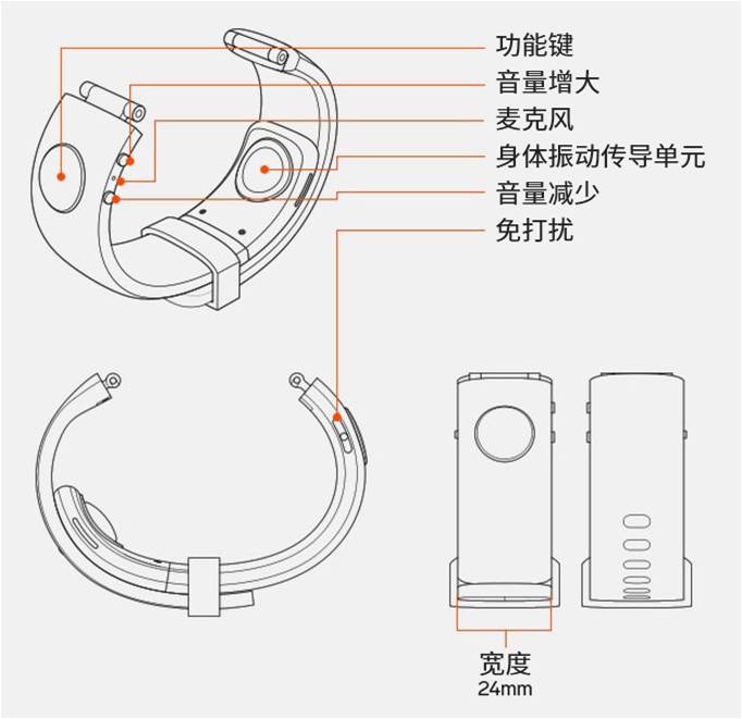 具體來說,Sgnl是通過藍牙接收手機信號,再借助內(nèi)部的身體振動傳導(dǎo)單元(Body Conduction Unit : BCU)將聲音通過你的手腕傳到指尖。而在你用指尖按住耳朵的過程中,內(nèi)耳封閉空間內(nèi)就會創(chuàng)造被放大的聲音。